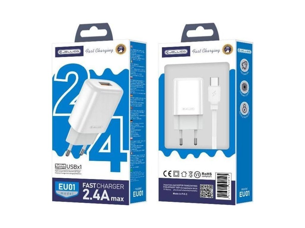1 x USB nabíječka do sítě + kabel USB-C/JELLICO 2,4 A 12 W