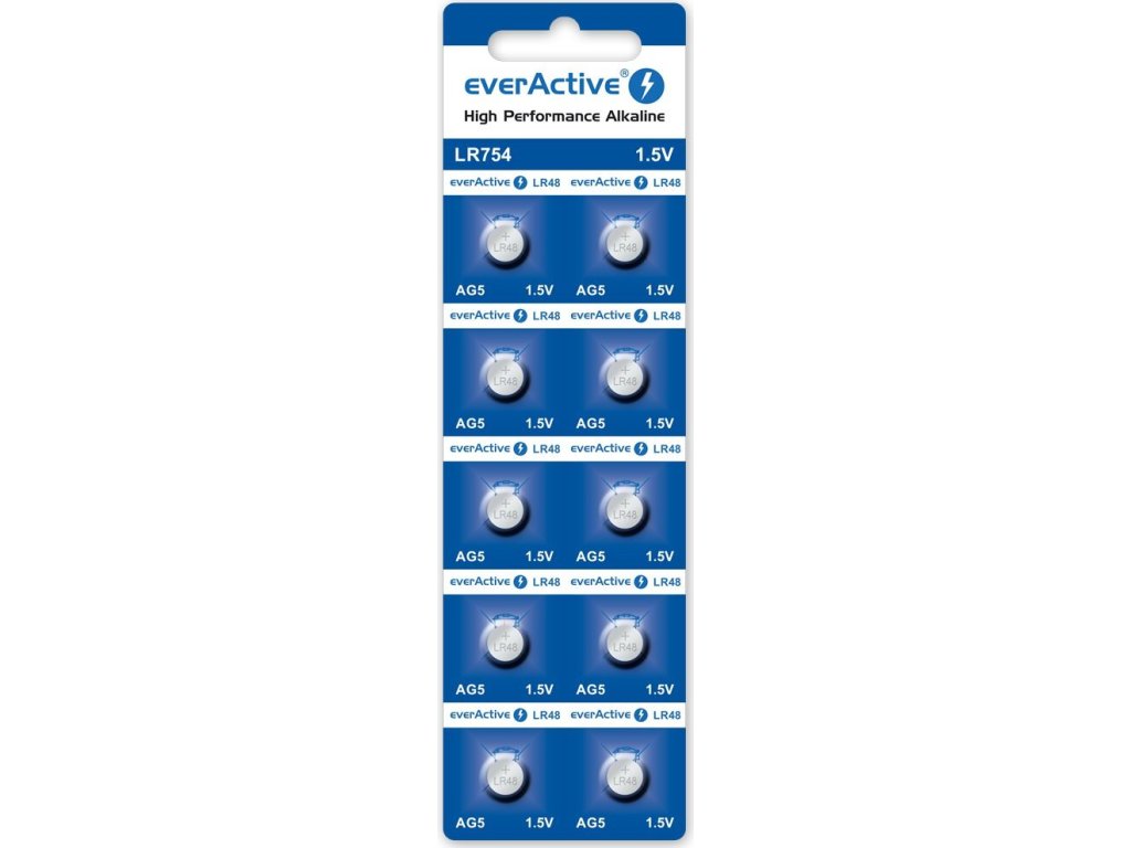 Alkalické baterie everActive LR754 LR48 AG5 - 10 kusů