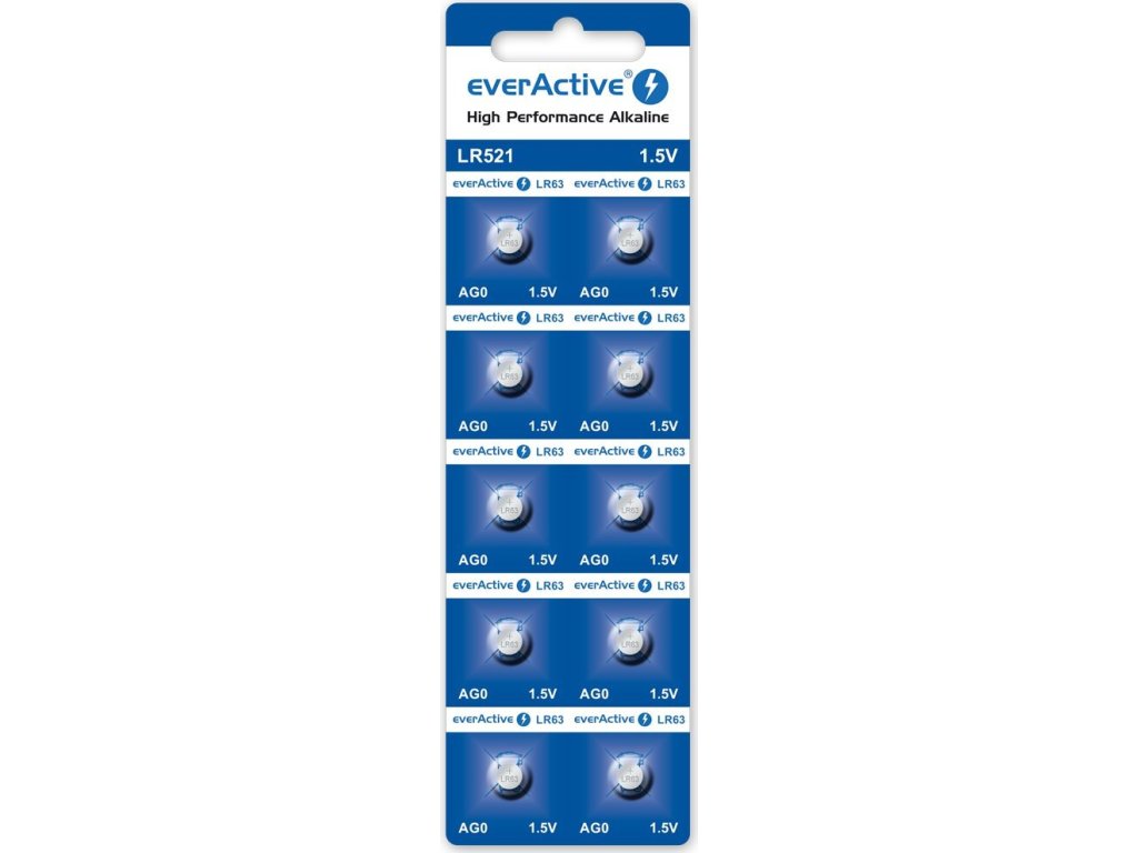10 x alkalické baterie (knoflíkové) G0/AG0/LR63/LR521 everActive