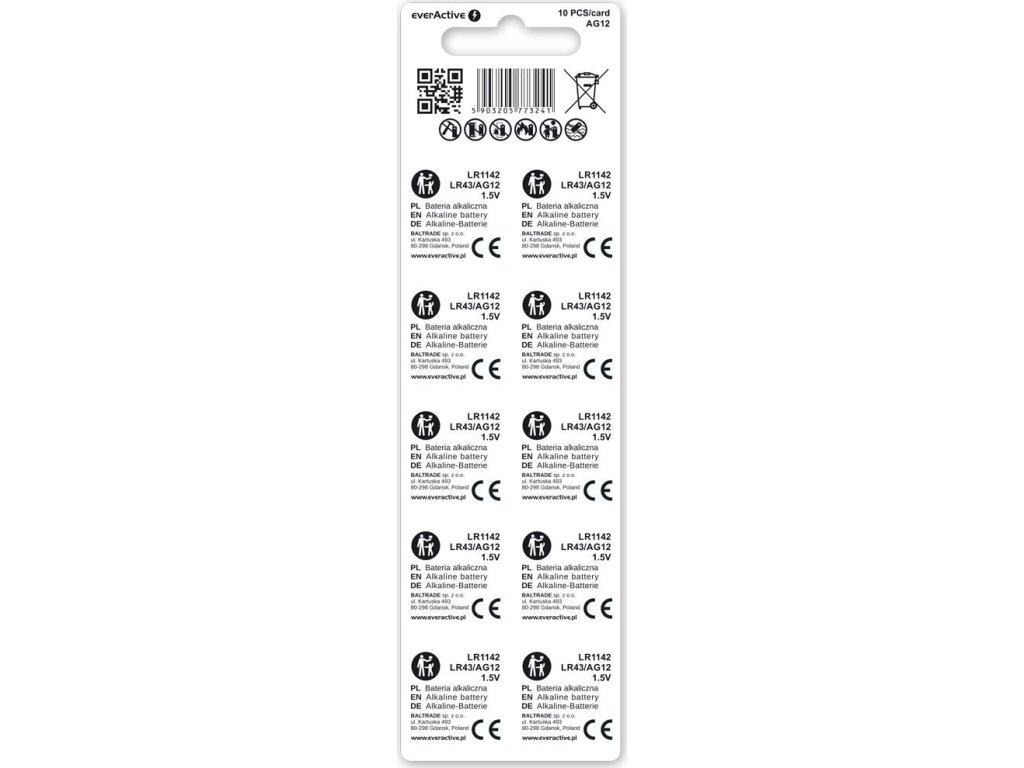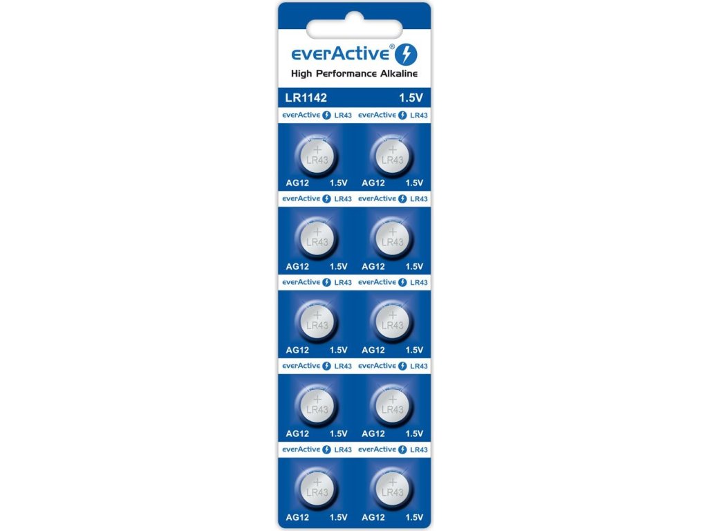 10 x alkalické baterie (knoflíkové) G12 / AG12 / LR43 / LR1142 everActive