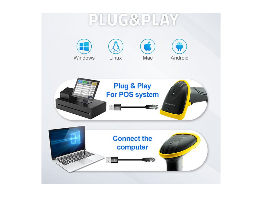 Délka 180 cm , - USB konektor - umožňuje připojení zařízení k PC nebo notebooku, díky čemuž může čtečka pracovat 24 hodin denně, - kompatibilní s Windows/Mac OS, Linux, Android , - ergonomický tvar - uł