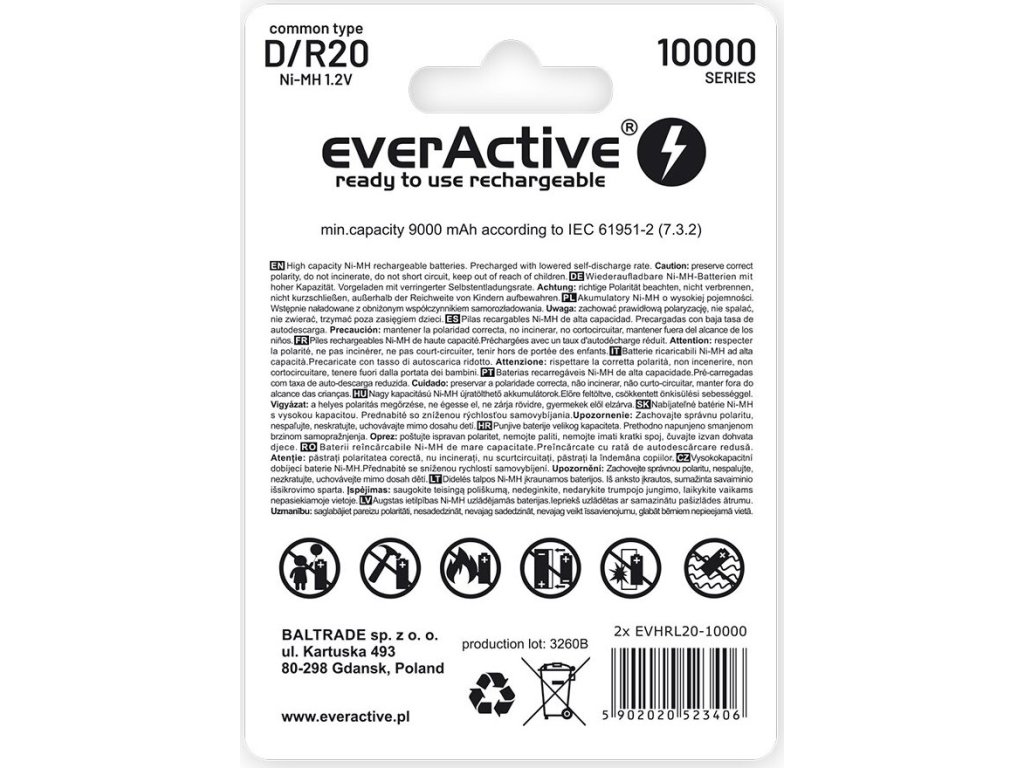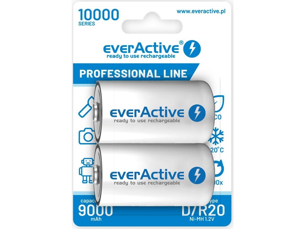 2 x inovativní baterie R20 D 10000 mAh everActive vyrobená technologií „ready to use“.