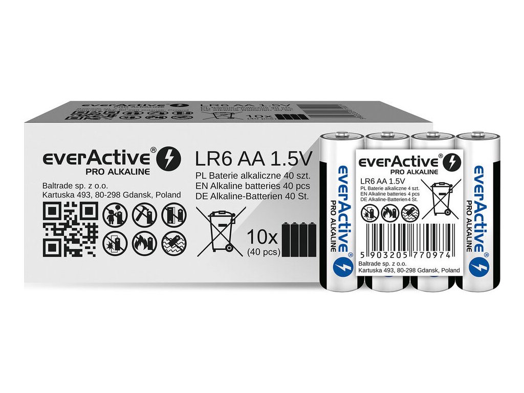4 x AA / LR6 Alkalické baterie PRO everActive