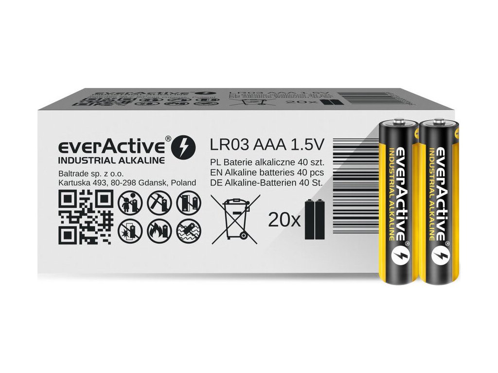 40 ks Alkalické baterie AAA everActive Industrial LR03