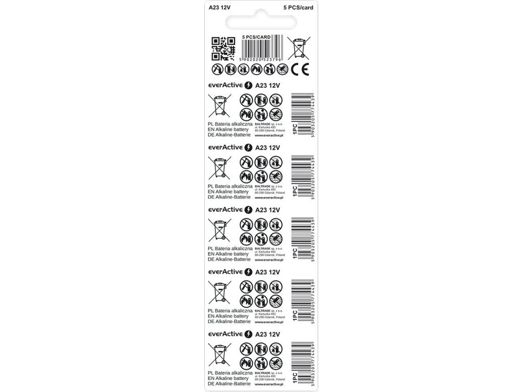 5 x 23A 12V Alkalické baterie everActive