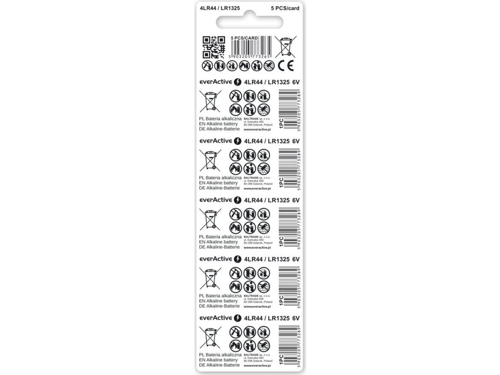 5 x 4LR44 / LR1325 / 544A Alkalická baterie everActive