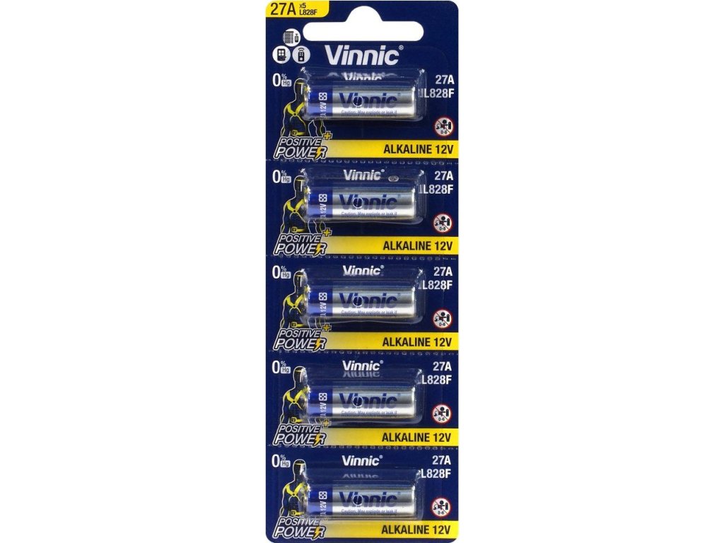5 X Vinnic Alkalická Baterie A27 12V – Balení 5 ks