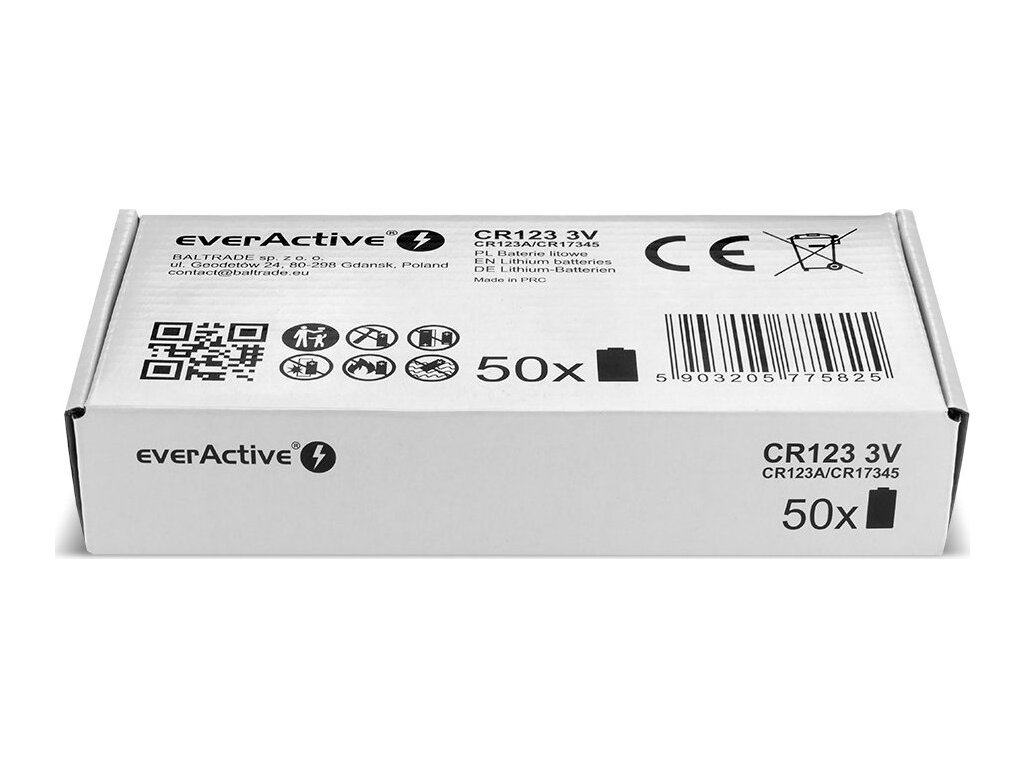 50 x baterie everActive CR123 lithiová 3V 1500mAh