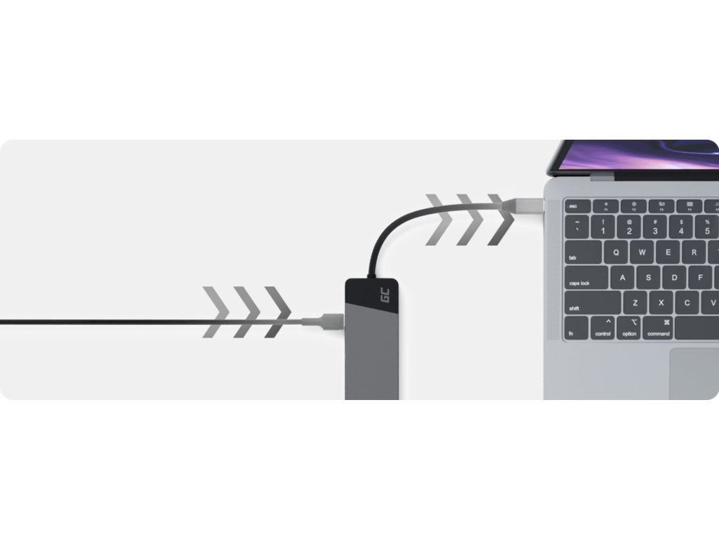 Vyměňte svůj port USB-C za několik chybějících portů. USB-C 7v1 GC Connect HUB přemění jeden USB-C Thunderbolt port na 7 dalších, což vám umožní připojit například monitor, myš, klávesnici, pendrive, externí disky, paměťové karty a dokonce i rychlé USB-C. nabíjecí zdroj pro váš notebook, notebook, ultrabook, tablet nebo chytrý telefon.