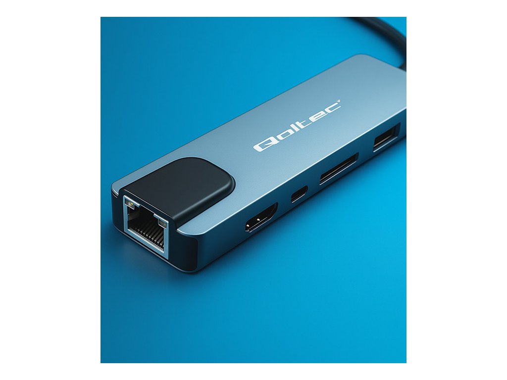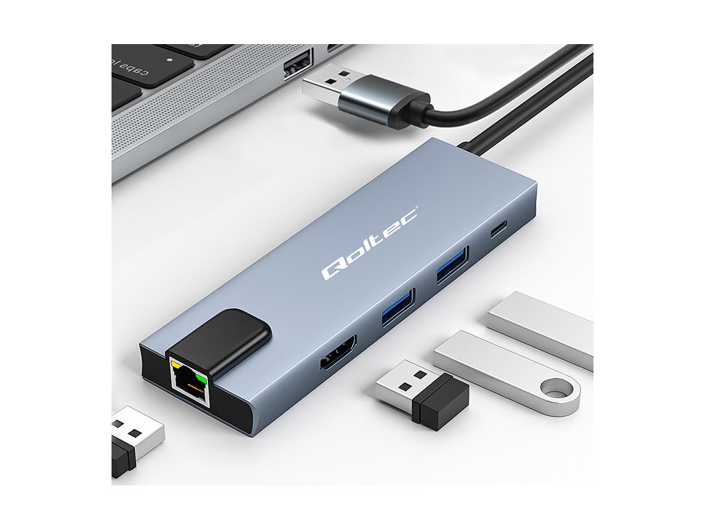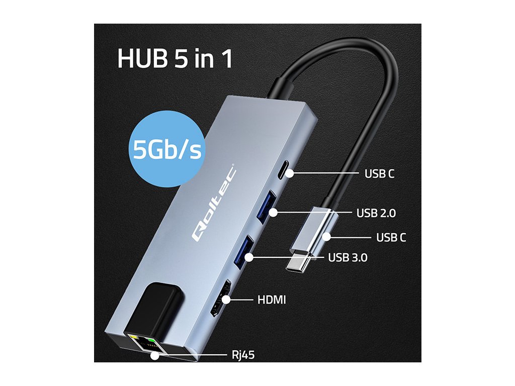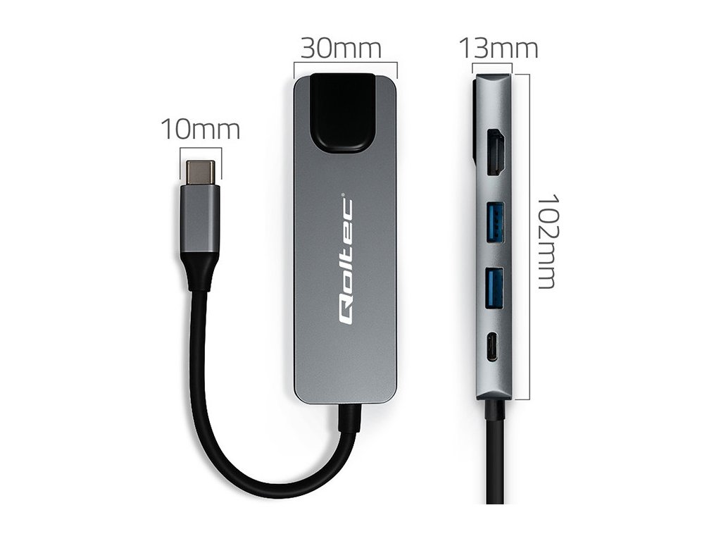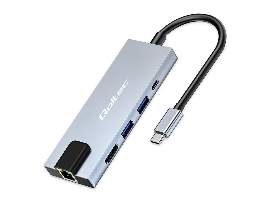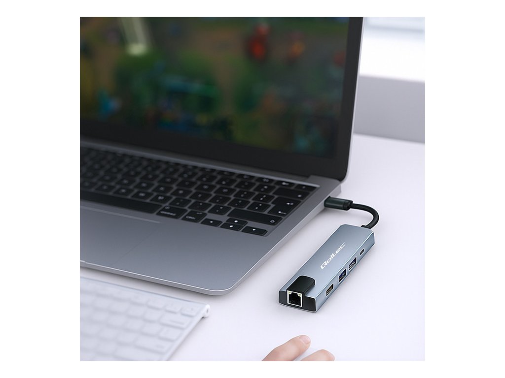 Adaptér rozbočovače Qoltec USB-C 5w1 | USB-C PD 100W | 2x USB | HDMI 4K | RJ45