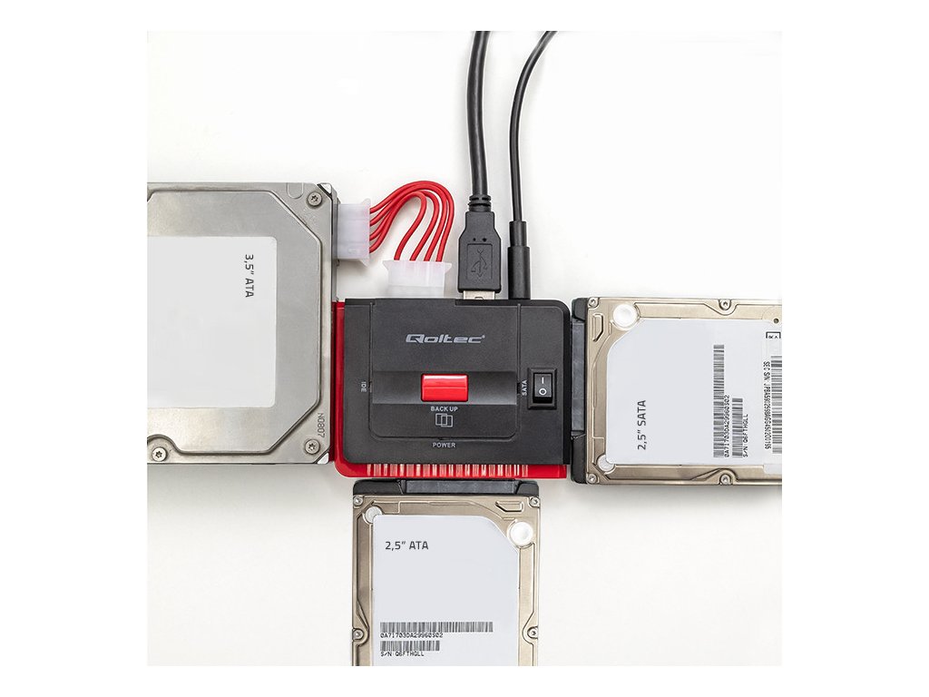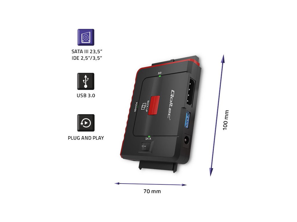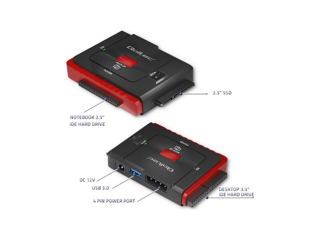 Adaptér Qoltec USB 3.0 je velmi užitečné zařízení, které umožňuje rychlou výměnu dat mezi připojenými 2,5" SATA a IDE disky. Adaptér umožňuje připojit 3 disky současně.