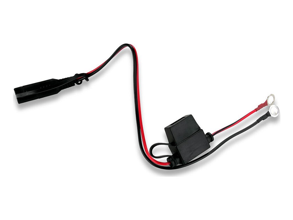 - odnímatelný kabel vybavený SAE rychlokonektorem, umožňuje nastavení nabíječky dle vašich potřeb, standardní výbava zahrnuje krokosvorky a koncovky s očky ,
