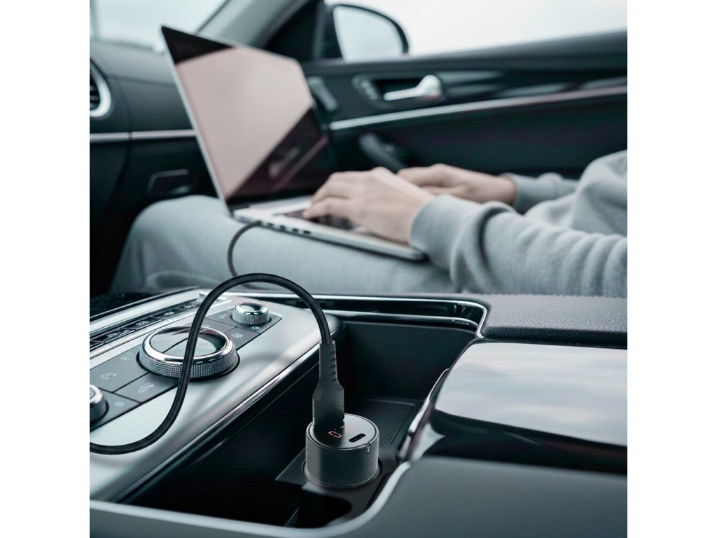 Dual Charging: Nabíjejte telefon spolujezdce a svůj notebook současně bez výrazného poklesu výkonu.