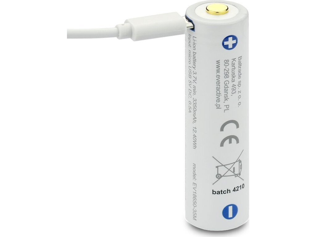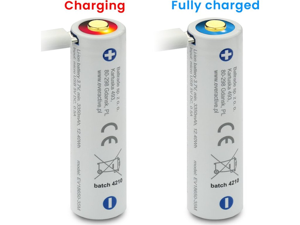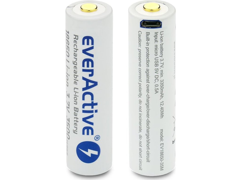 Nabízený akumulátor everActive 18650 vyrobený v Li-ion technologii lze nabíjet jakoukoli micro USB nabíječkou - akumulátor má zabudovaný ovladač, který zajišťuje bezpečné nabíjení a navíc elektronicky chrání akumulátor během provozu.