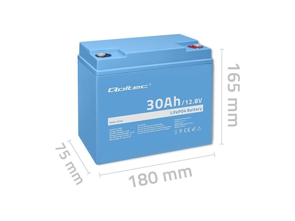Baterie LiFePO4 | 12.8V | 30Ah | 384Wh | BMS