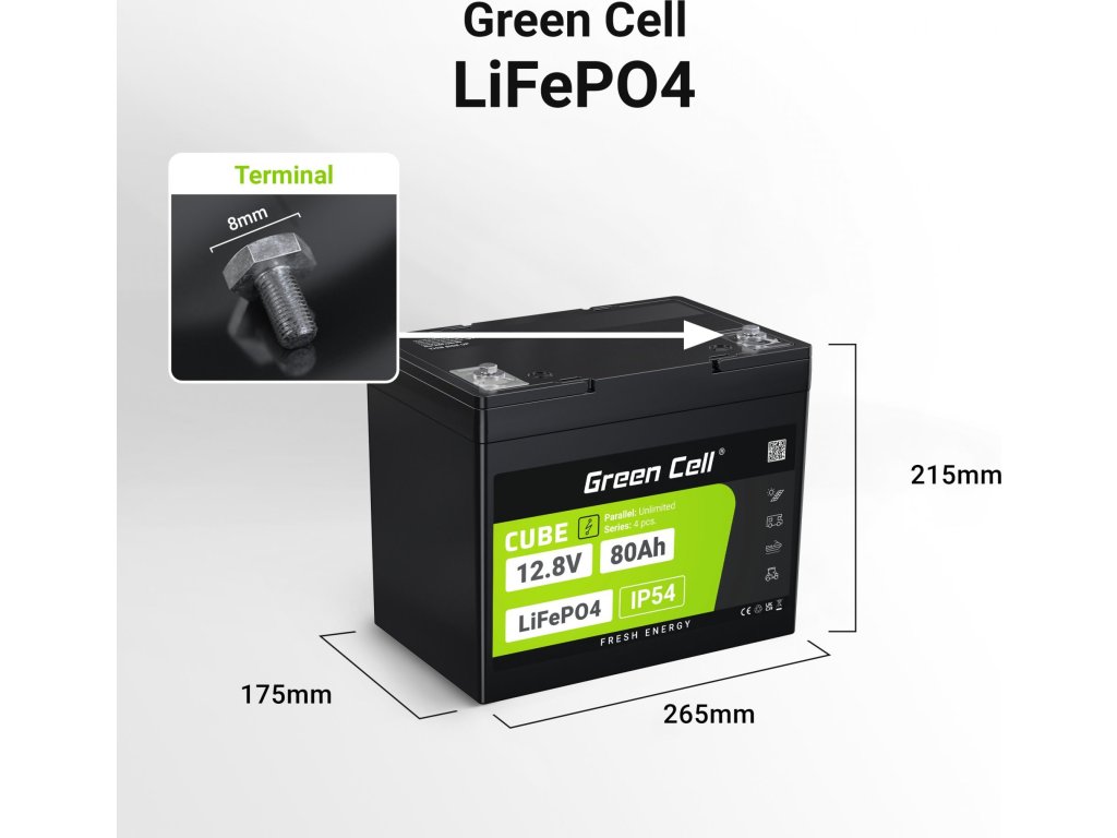 Baterie LiFePO4 značky Green Cell jsou mimořádně odolné. Dokonce i po absolvování více než 3 000 cyklů úplného nabití (při 100% hloubce vybití) si zachovají více než 70% své původní kapacity. Díky tomu se můžete těšit z jejich vynikajícího výkonu přes 10 let.