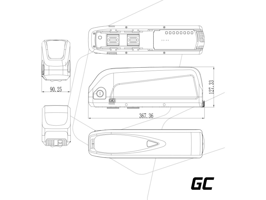 Rozměry baterie: 36.7 x 9 x 12.7 cm