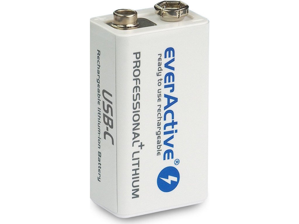 Baterie everActive o velikosti 9V Li-ion baterie nabijete pomocí jakékoli USB-C nabíječky - baterie má zabudovaný ovladač, který zajišťuje bezpečné nabíjení a navíc elektronicky chrání celou baterii během provozu.