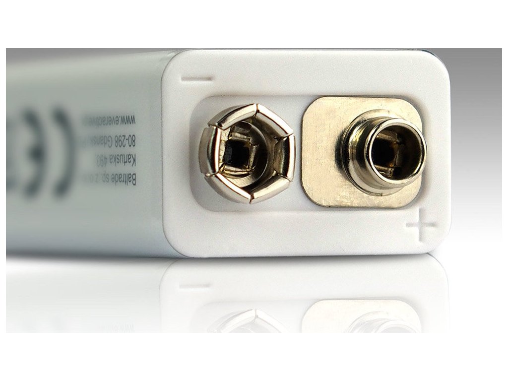 Nabízená baterie je jednou z nejsilnějších a nejkapacitnějších baterií dostupných ve velikosti "9V" - minimální kapacita 500 mAh bylo dosaženo použitím vyhrazených lithium-iontových článků .