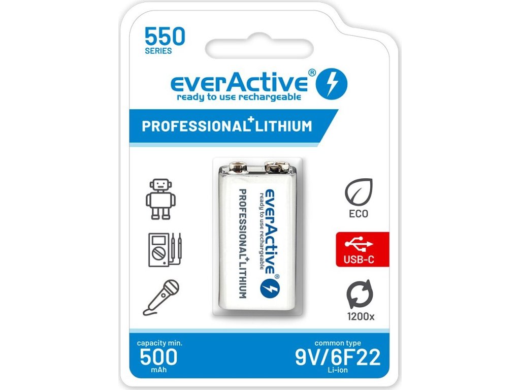Baterie s USB TYP C6F22 AKU everActive 550 9V + lithium USB-C