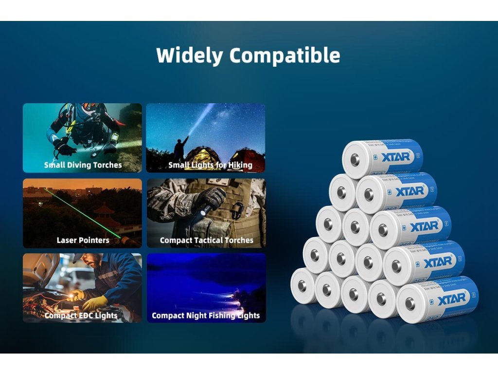 - Kompatibilní s: Svítidla, elektronika s vysokým odběrem energie, zařízení kompatibilní s bateriemi 16340 nebo CR123A