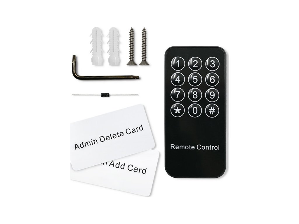 Obsah balení: | Kódový zámek Dálkové ovládáníMontážní příslušenstvíNávod |