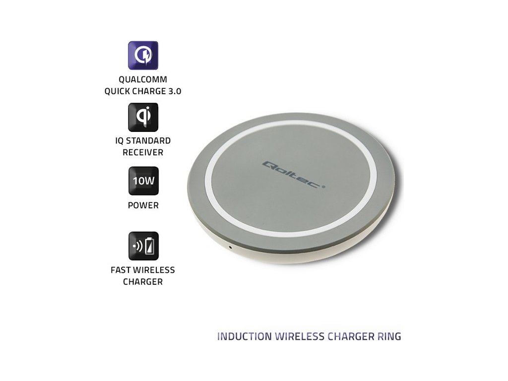 Bezdrátová indukční nabíječka RING | Qualcomm QuickCharge 3.0 10W | Šedá