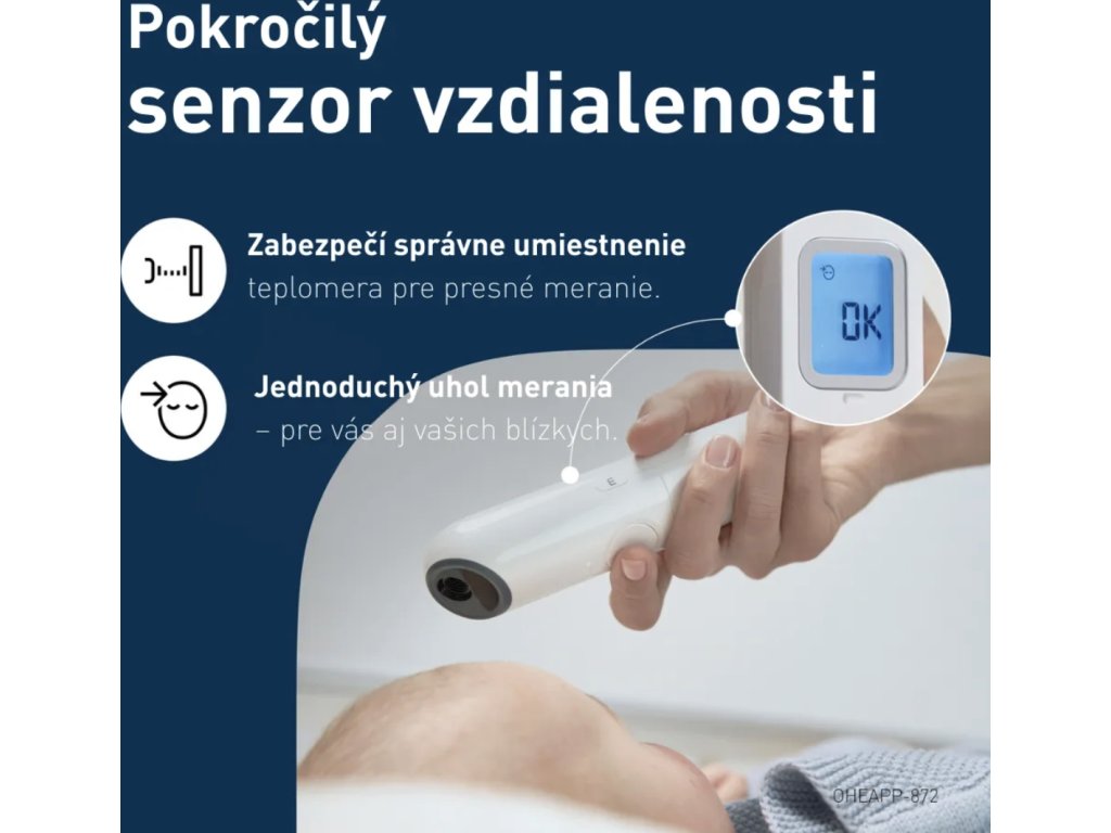 Zapomeňte na dlouhé minuty čekání. OMRON Gentle Temp 730 poskytuje rychlý výsledek již za 1 vteřinu . Díky integrovanému pokročilému čidlu vzdálenosti máte vždy jistotu, že teploměr držíte ve správném úhlu a vzdálenosti od čela. To zaručuje vysoce přesné a spolehlivé výsledky při každém použití. Pokud potřebujete měření opakovat, teploměr je připraven k dalšímu použití okamžitě – již za další sekundu.