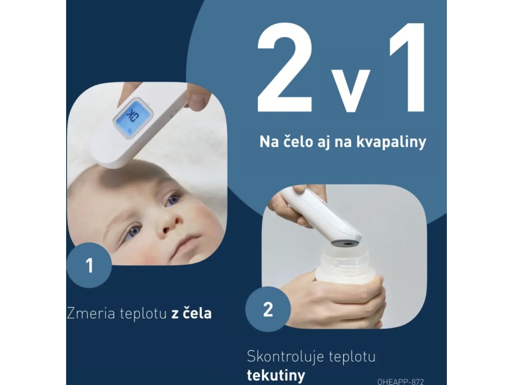 Tento přístroj není jen běžným čelovým teploměrem. Disponuje praktickou funkcí 2 v 1 , což znamená, že kromě tělesné teploty dokáže přesně změřit i povrchovou teplotu různých předmětů a kapalin. Rychle a bezpečně s ním zkontrolujete například teplotu kojeneckého mléka v láhvi nebo teplotu vody připravené ke koupání miminka.