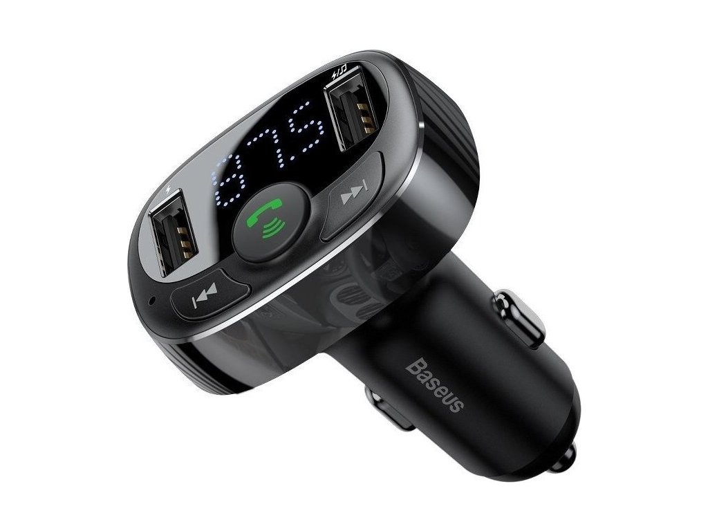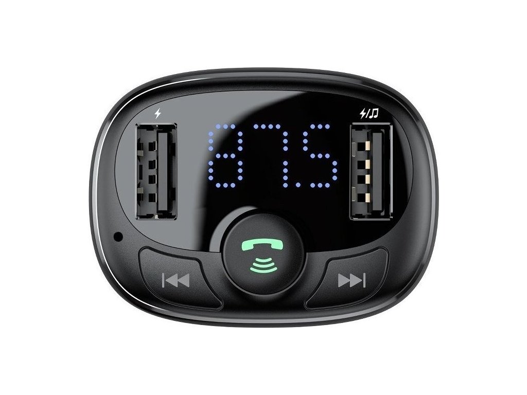 Baseus Bluetooth FM transmitter – vysílač, díky kterému budete moci bezdrátově poslouchat hudbu v telefonu az aplikací jako: OpenFM, Spotify, Youtube. Zařízení umožňuje uskutečňovat vysoce kvalitní hlasové hovory. Další výhodou je možnost přehrávání hudby z pendrive nebo paměťové karty micro SD. Vysílač je vybaven také LED displejem. K nastavení frekvence slouží LED displej. Vestavěná nabíječka se dvěma USB porty: 1A a 2,4A. Moderní design zařízení zapadne do každého interiéru.