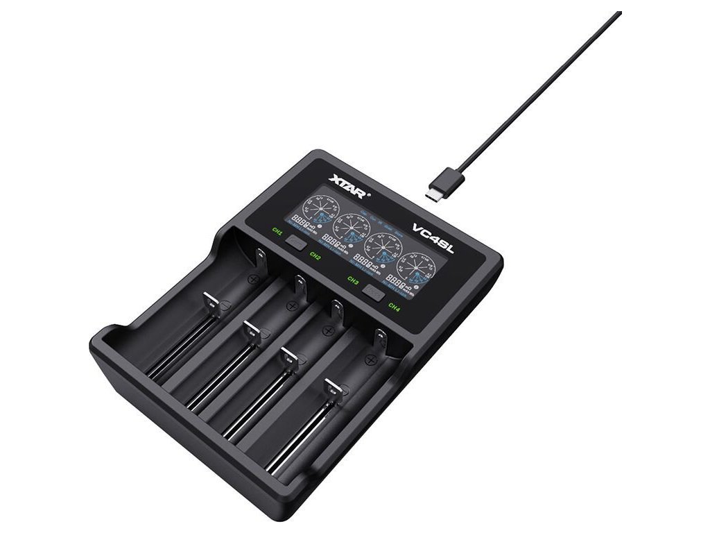 VC4SL je profesionální procesorová nabíječka s třístupňovým nabíjecím procesem TC/CC/CV a LCD displejem. Nabíjí 1-4 Li-ion 3,6/3,7V a Ni-MH články libovolné kapacity ve velikostech AAA/R03, AA/R6, R14/C, D, 10440, 14500, 14650, 16340, 17500, 1780 00, 22650, 25500, 26650, 32650. Včetně chráněných baterií 20700 a 21700