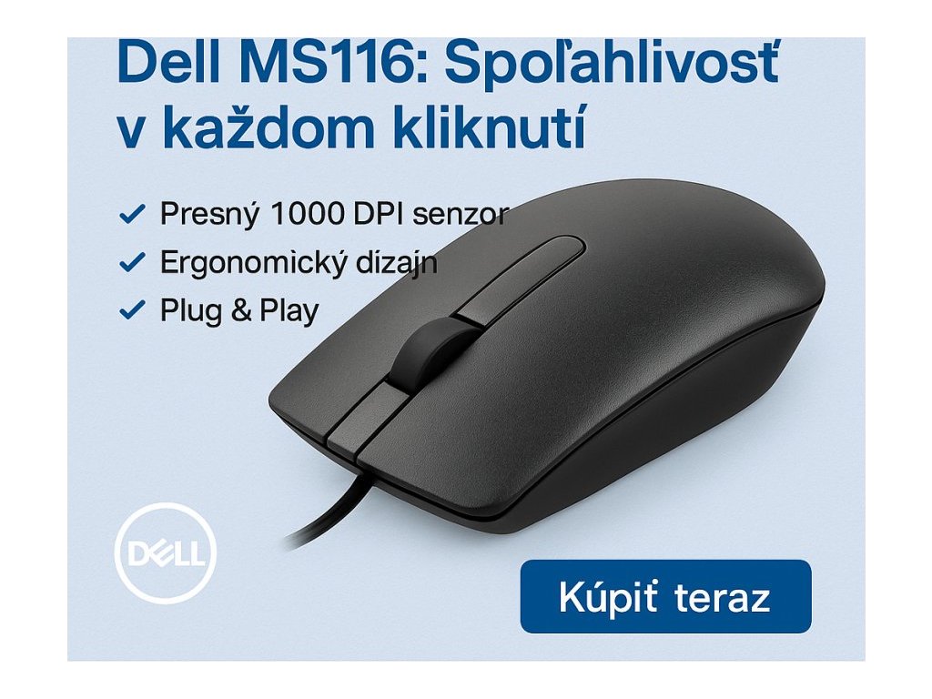 Už žádné starosti s ovladači nebo složitou instalací. Optická myš Dell je kompatibilní prakticky se všemi počítači a notebooky vybavenými standardním USB portem . Díky principu Plug and Play ji stačí jednoduše připojit do volného USB portu a můžete okamžitě začít pracovat. Je to ideální řešení, pokud potřebujete jednu myš do kanceláře a druhou na doma – vždy víte, že bude fungovat.