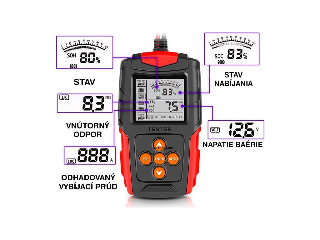 Digitální tester baterií s LCD displejem | 12V | 24V | 3Ah - 200Ah