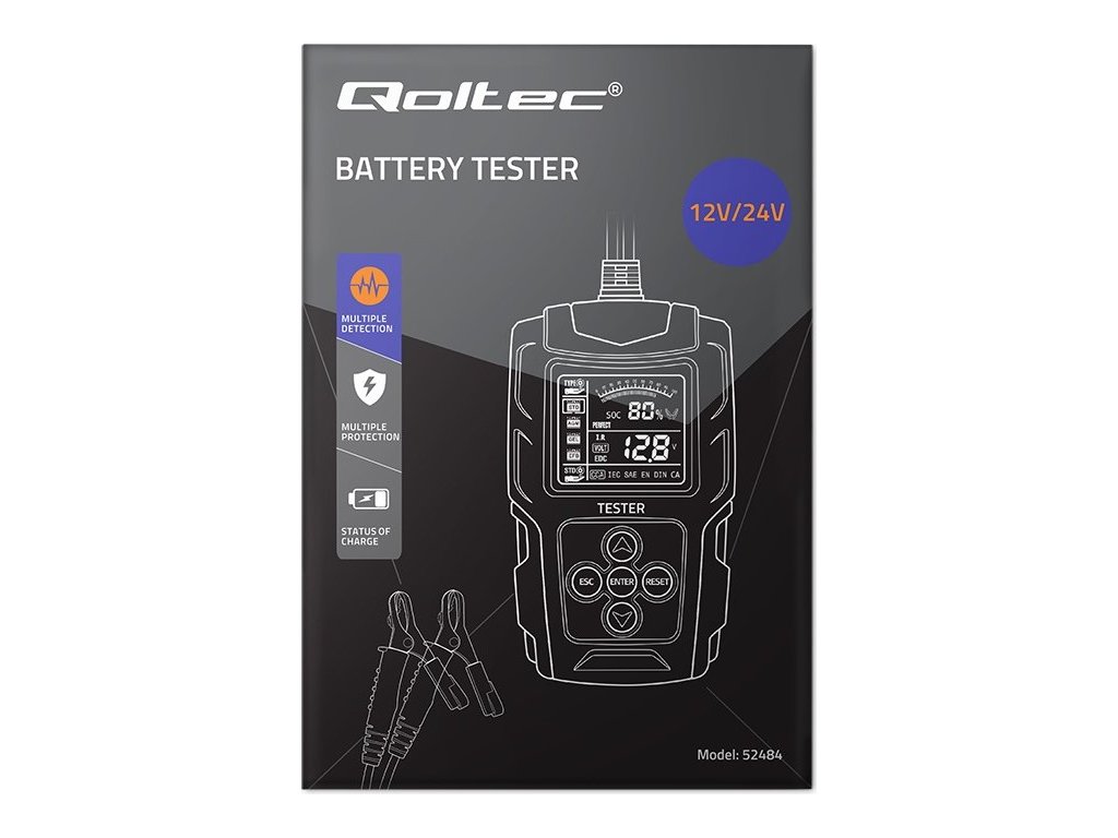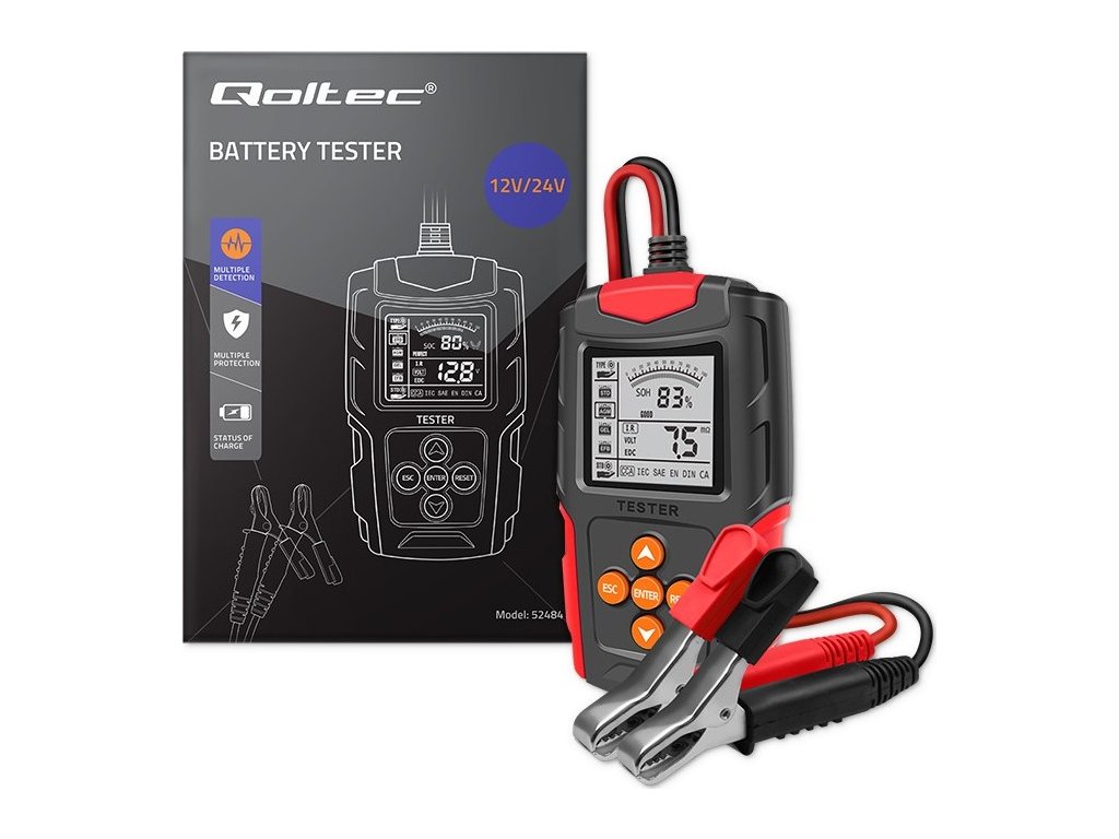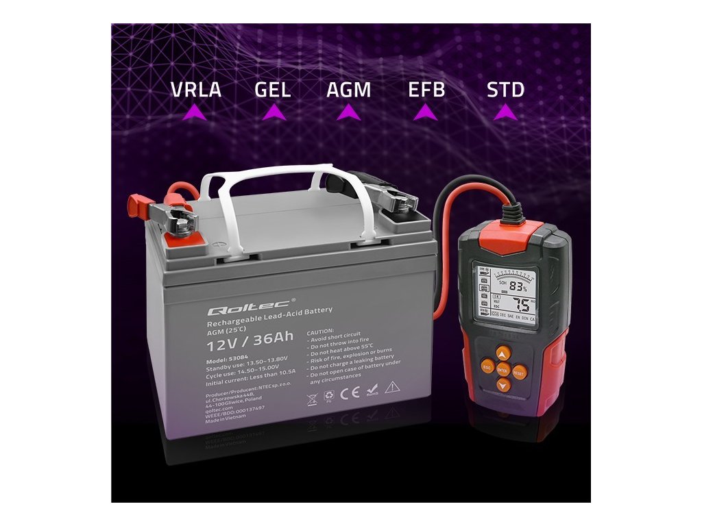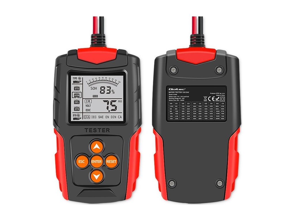 Tester baterií Qoltec se vyznačuje tím, že využívá pokročilou technologii testování vodivosti k poskytování přesných výsledků měření pro baterie AGM, GEL, VRLA, EFB, STD . Pamatujte, že nesprávné odečítání výsledku testu nemusí vždy znamenat poškození baterie Koroze a všechny druhy znečištění mohou ovlivnit výsledek měření, proto se před měřením vyplatí vyčistit místa, na která přiložíte sondy.