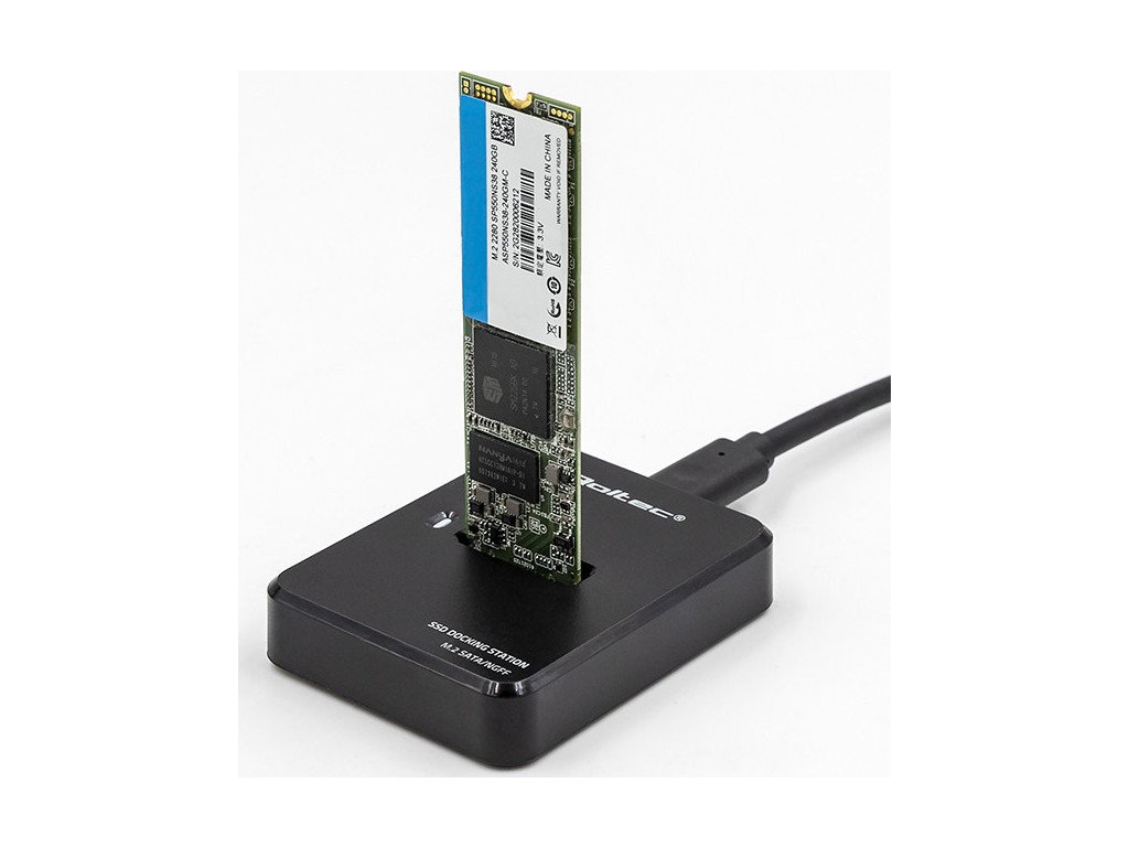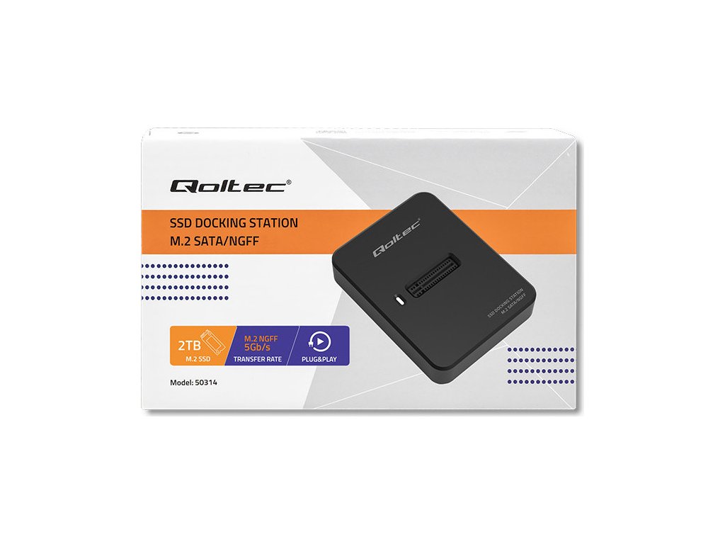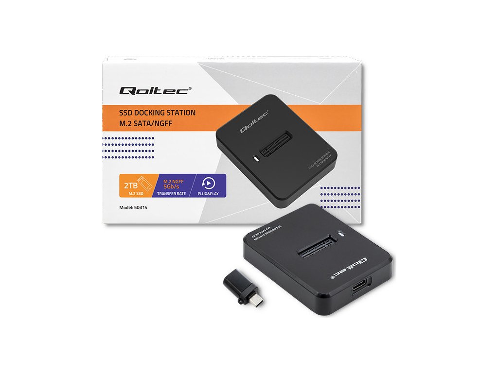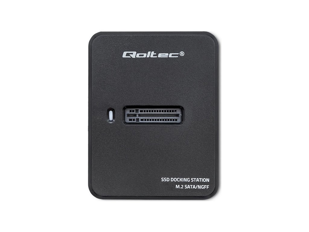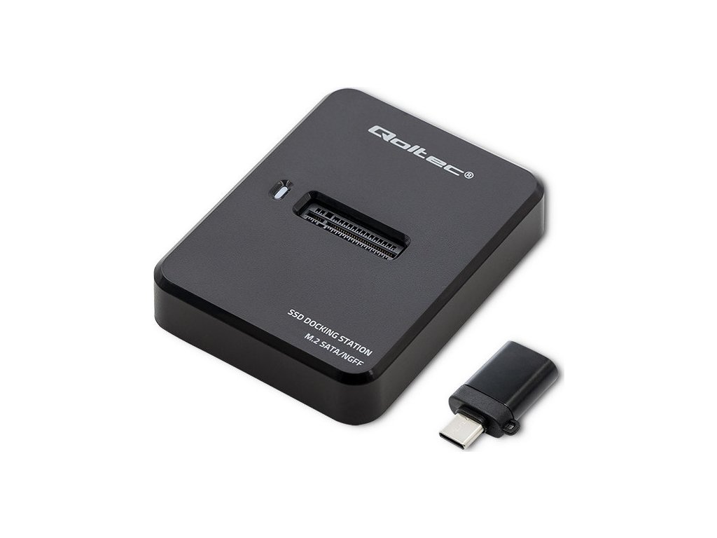 Přenosná dokovací stanice Qoltec umožňuje připojit SSD disk k portu M.2 SATA a následně použít konektor USB C 3.1 k vybranému elektronickému zařízení. Stanice funguje se zařízeními, jako je TV, počítač, notebook, herní konzole a router.