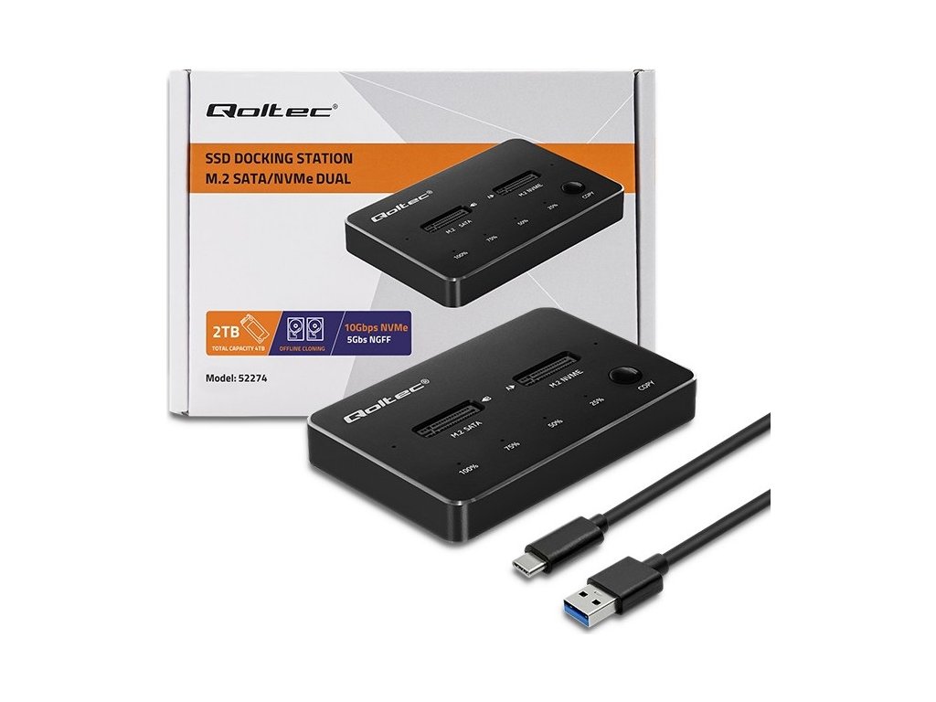 Dokovací stanice Qoltec M.2 SSD | NVMe| SATA | USB-C | DUAL 2 x 2 TB