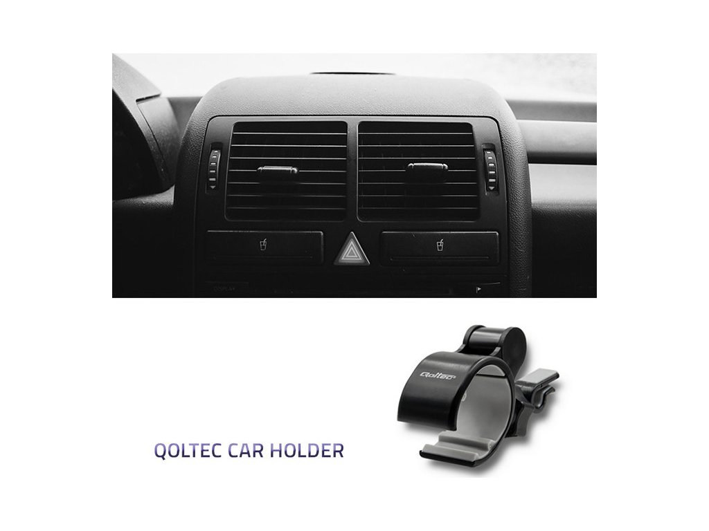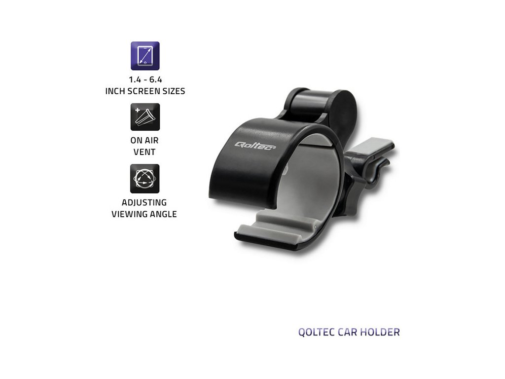 Držák do auta Qoltec se vyznačuje nejlepší kvalitou a vyroben z kvalitních materiálů. Spojuje v sobě modernu, stylový design a především funkčnost. Držák je vybaven hrotem pro montáž na mřížku ventilace auta. To zaručuje stabilní držení telefonu a rychlý přístup k jeho funkcím a neomezuje tak viditelnost během jízdy. Měkká podšívka na vnitřní straně držáku je navržena tak, aby chránila telefon před poškrábáním. Držák má velký rozsah nastavení (od 22 do 99 mm), což umožňuje uchycení telefonu is malým pouzdrem. Dá se použít na většinu telefonů, které jsou v současnosti dostupné na trhu.