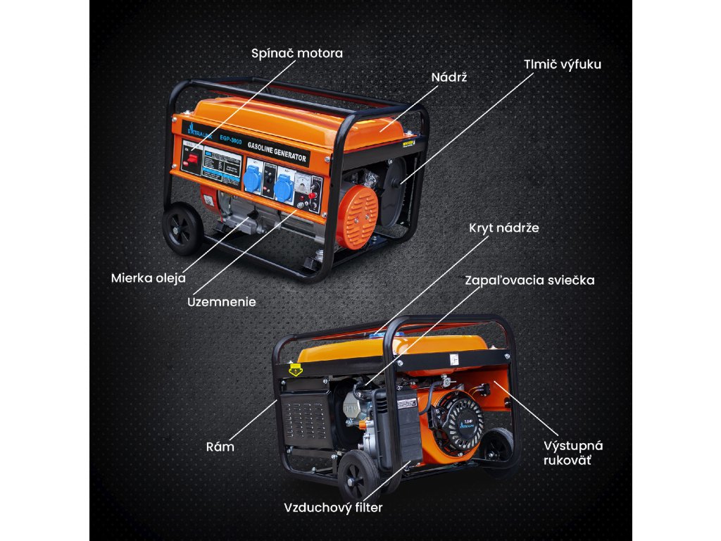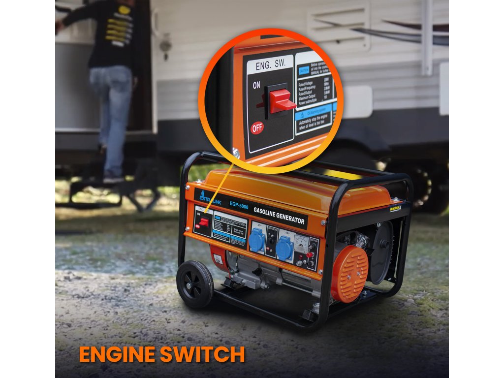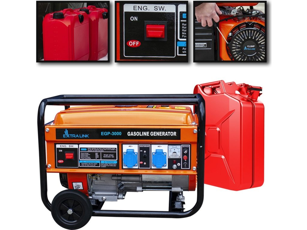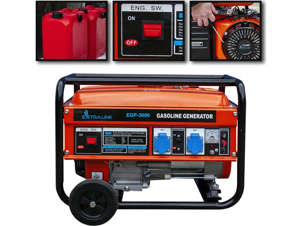 Benzinová elektrocentrála Extralink EGP-3000 je vybavena kompaktním 4-taktním OHV motorem o objemu 210 cm³. Na ovládacím panelu jsou dvě standardní 230V zásuvky. Systém snadného startování umožňuje nastartovat motor rychle as minimální námahou.