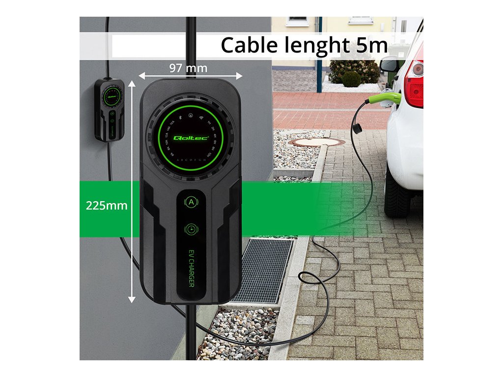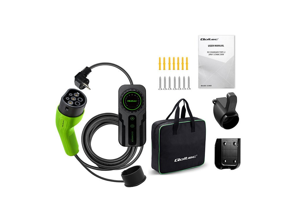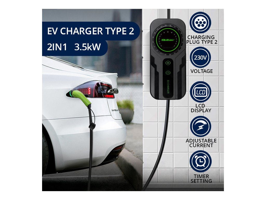 Nabíječka má konektor typu 2 , který je v současnosti oficiální normou Evropské unie a nabíjí elektromobily vybavené příslušnou nabíjecí zásuvkou. Konektor typu 2 má 7 pinů, z toho 3 nebo 5 pinů je určeno k nabíjení a 2 ke komunikaci mezi stanicí a autem . Kompatibilní s většinou elektromobilů prodávaných v Evropě. Nabíječka Qoltec podporuje čtyři proudové režimy: 8A, 10A, 13A a 16A . Je vhodné dodat, že konektor typu 2 je určen pro elektromobily s nabíjecím výkonem vyšším než 3kW .