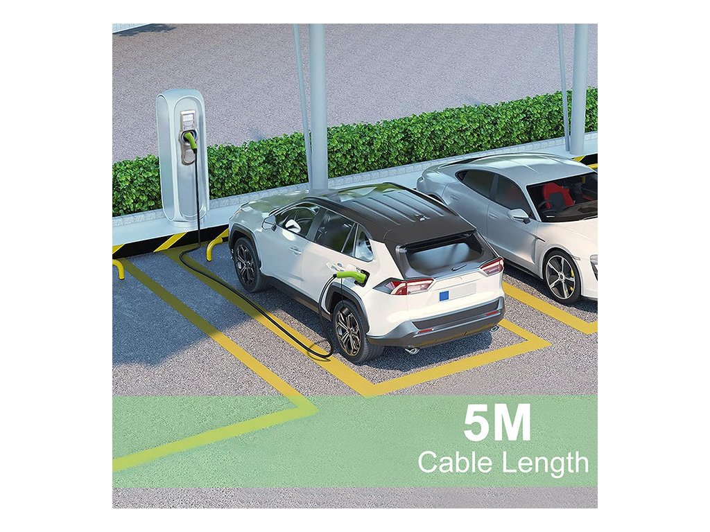 Ergonomická zástrčka a délka kabelu 5 metrů poskytne každému uživateli vysoký komfort. Kabel byl důkladně testován, je plně v souladu se všemi požadovanými bezpečnostními normami, je ohnivzdorný a odolný vůči extrémním povětrnostním podmínkám , navržen pro provoz při teplotách -30˚C ~ +50˚C. Vnější plášť kabelu má navíc izolované kontakty, je vysoce odolný a flexibilní, stejně jako voděodolný a prachotěsný.