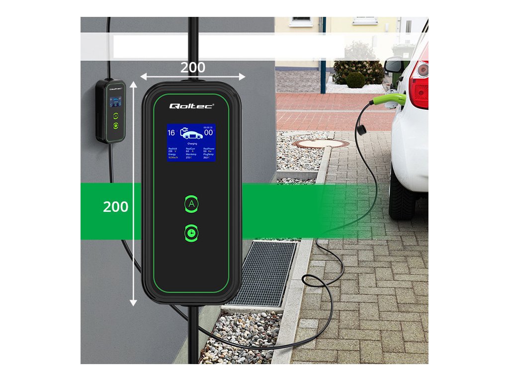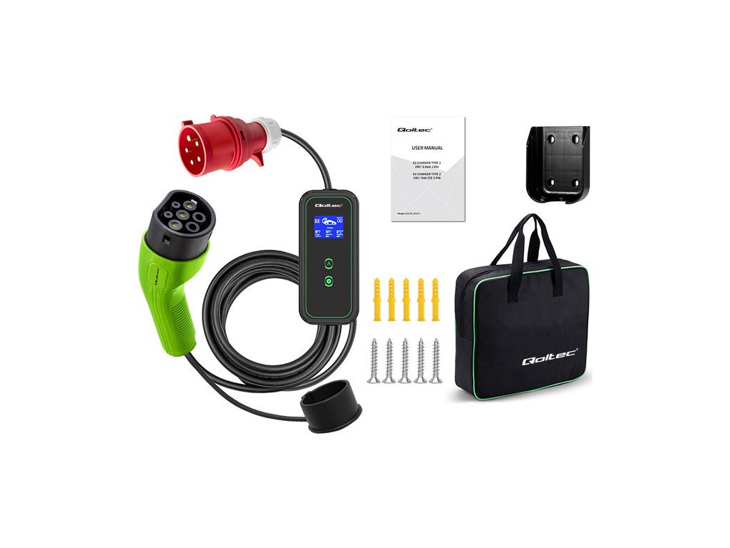 Nabíječka má konektor typu 2 , který je v současnosti oficiální normou Evropské unie a nabíjí elektromobily vybavené příslušnou nabíjecí zásuvkou. Konektor typu 2 má 7 pinů, z toho 3 nebo 5 pinů je určeno k nabíjení a 2 ke komunikaci mezi stanicí a autem . Kompatibilní s většinou elektromobilů prodávaných v Evropě. Nabíječka Qoltec podporuje čtyři proudové režimy: 16A, 20A, 24A a 32A . Je vhodné dodat, že konektor typu 2 je určen pro elektromobily s nabíjecím výkonem vyšším než 3kW .