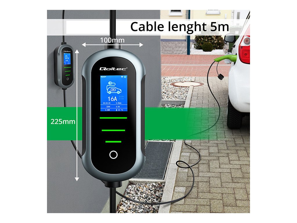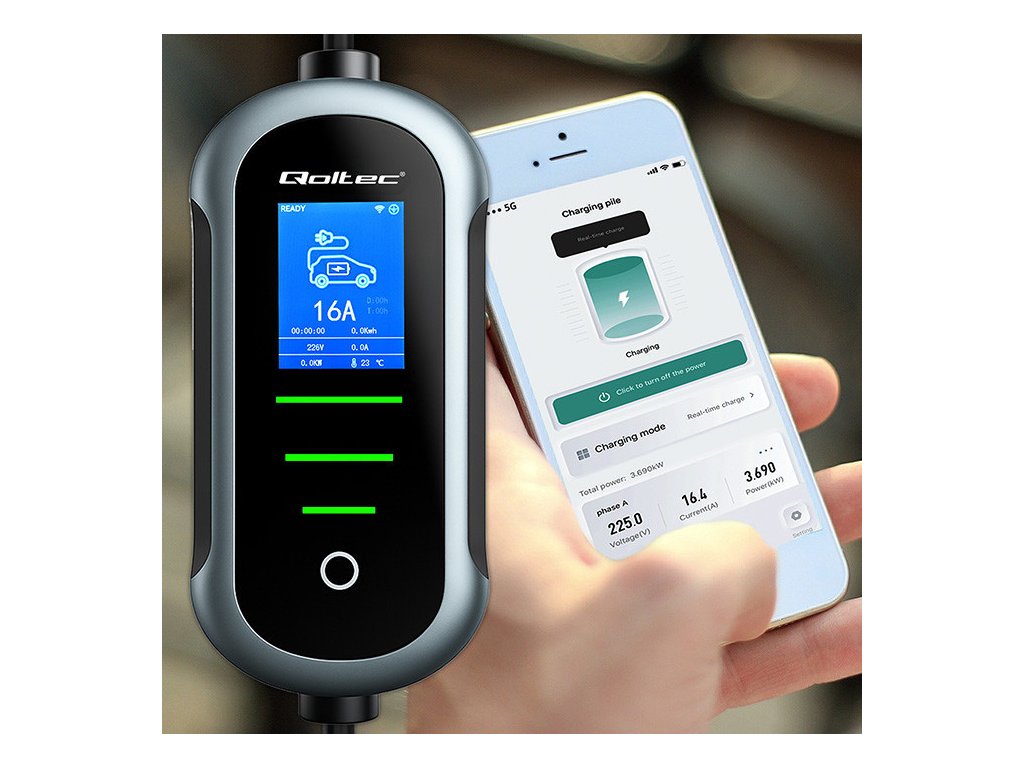 Nabíječka Qoltec podporuje čtyři proudové režimy: 8 A, 10 A, 13 A a 16 A. Stojí za zmínku, že konektor typu 2 je určen pro elektrická vozidla s nabíjecím výkonem vyšším než 3 kW .