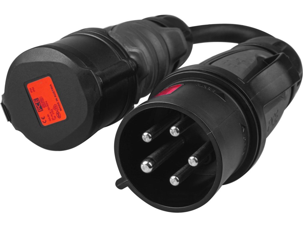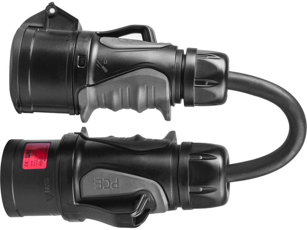 Adaptér z červené zástrčky CEE 16 A do červené zástrčky CEE 32 A, díky kterému budete