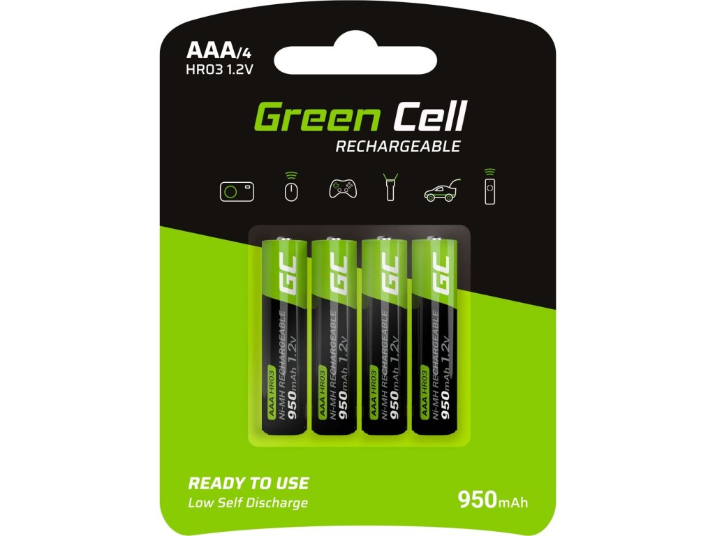 Green Cell Rechargeable Batteries 4x AAA HR03 950mAh