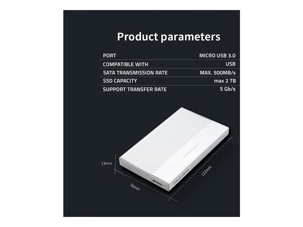 Obsah balení: | 1 x Kryt SSD HDD 1 x USB kabel 1 x Uživatelská příručka 1 x Záruční karta |