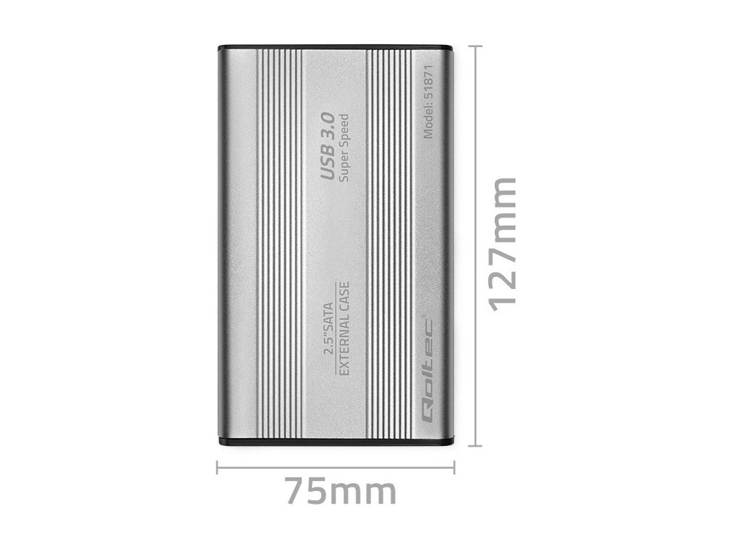 Hliníkové pouzdro | kapsa na 2,5" HDD SSD disky SATA3 | USB 3.0 | Stříbrná