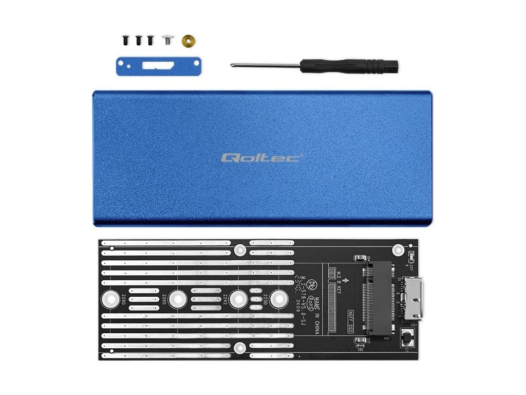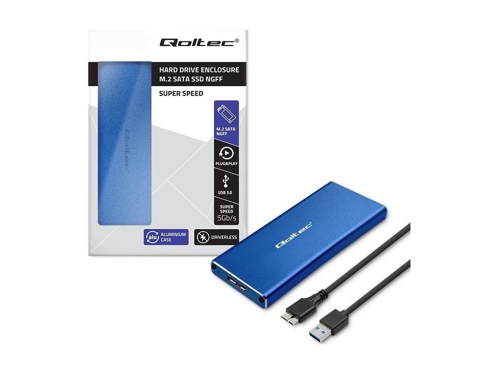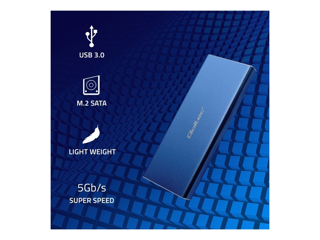 Hliníkové pouzdro | Pozice pro M.2 SSD | SATA | NGFF | USB 3.0 | Super rychlost 5Gb/s | 2TB | Modrá