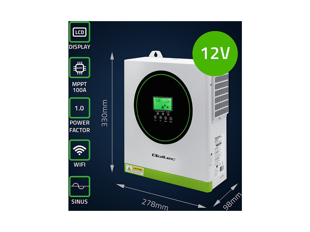 Hybridní solární invertor mimo síť 1500W | 100A | 12V | MPPT | Sine | Možnost Wi-Fi | Faktor výkonu 1.0
