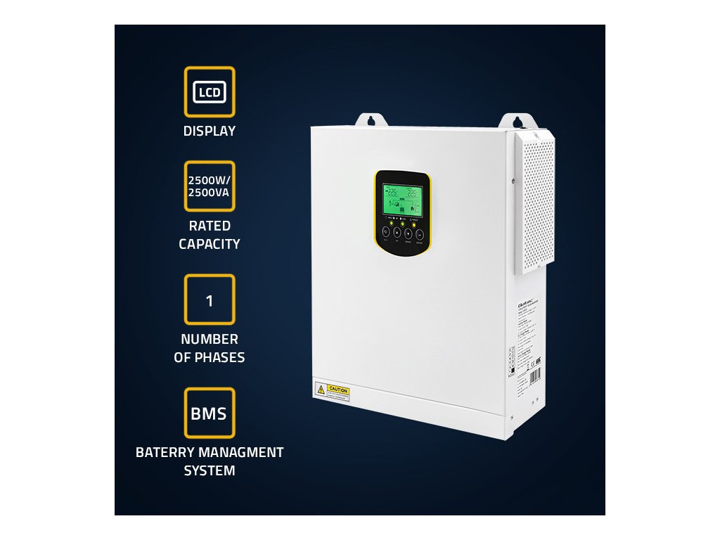 Hybridní solární invertor mimo síť 2,5 kVA| 2,5 kW | 100A | MPPT | LCD | BMS | Sine