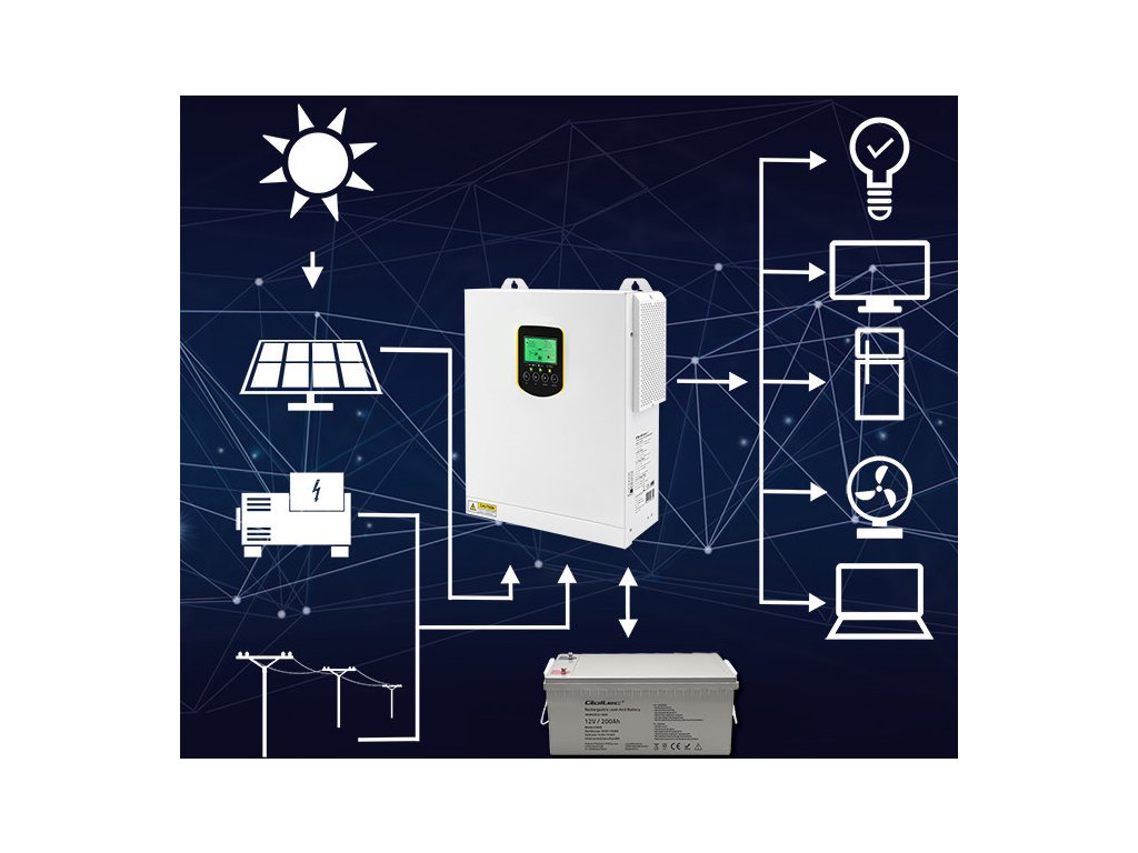 Využívá přebytečnou sluneční energii k napájení přijímačů a nabíjení baterie. Když je produkce energie větší než aktuální potřeba, přebytečný proud lze přenést na nabíjení LiFePO4, AGM, GEL baterií nebo na skladování energie, což umožňuje uskladnění energie pro pozdější použití. Hybridní invertor se může automaticky přepnout do režimu vypnuté sítě a napájet jej z baterií .